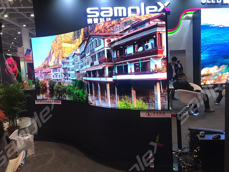 说到OLED中的颜值担当,以这款55寸OLED双面曲面拼接屏为首,如同中国传统文化元素屏风一样立地而起,古韵风雅而又不失时尚与科技感,为304AM永利科技整个展位提高空间的品位。