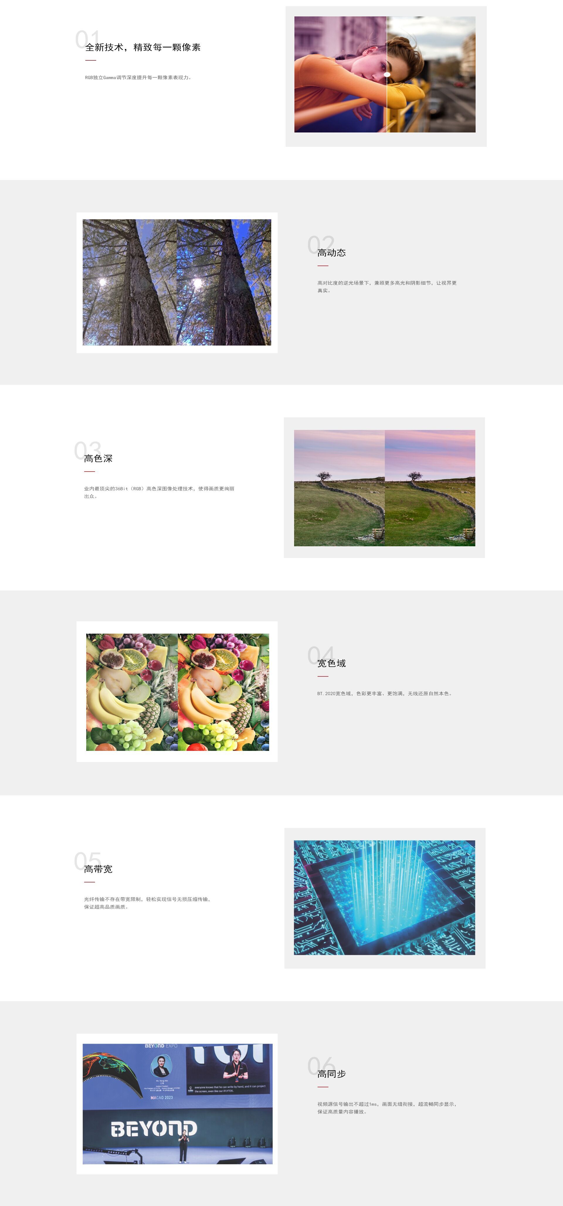 根据屏幕所用LED的不同特性,实施白平衡校准及色域匹配,确保真实色彩还原;